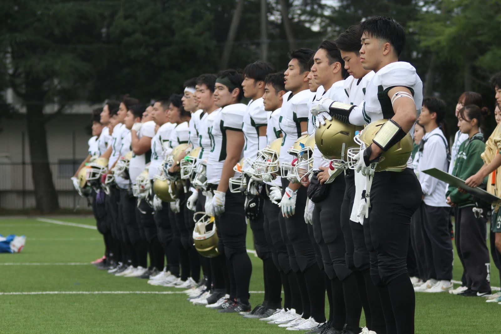 福井県立大学に敗れてからの一か月間、私たちはフィニッシュを課題に練習を続けてきました。オフェンスならば1ydでも前に、ディフェンスでは自分がタックルするまで、を意識づけていきました。その結果前半からディフェンスでビッグプレーが生まれ、取り切るところをとって試合を優位に進めることができたと思います。シーズンをよい形で終わらせることができたかもしれませんが、私たちの目標は北陸で優勝して全国に行くことです。来年からは誰も全国を経験したことのないチームになります。EVERGREENのプライドを胸にこれからも練習を続けていきますので、引き続きご支援ご声援の程よろしくお願いいたします。